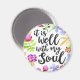 Design de tipografia estilo moderna, escrita à mão, com palavras, "É bem com a minha alma" do famoso hino. O tipo é rodeado por uma borda colorida de flor de cor d'água em todos os lados.