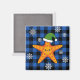 Imã Estaleiro do Natal Kawaii no padrão azul de búfalo