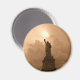 Fotografia da Estátua da Liberdade com o sol por trás em tons Sepia.