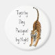 Design de arte original de um tigre Bengala esticado em um ímã redondo personalizável da designer Carolyn McFann do Two Purring Cats Studio para grandes fãs de gatos.