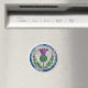 Um design que apresenta o emblema escocês como um painel de vidro manchado.