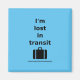 Mostra uma mala preta e as palavras "Estou perdido em trânsito." Humor, engraçado, design espirituoso para aqueles confundidos pela vida, viajando ou perdendo bagagem em uma viagem. Sem necessidade de um aeroporto — quando você está perdido, você está perdido. Excelente aniversário ou presente de Natal para viajantes de negócios, férias, e aqueles sem rumo, sem objetivo, tendo uma crise de meia-idade, infelizes e sem certeza o que fazer, ou incertos sobre a vida. Também para viajantes frequentes, como guardas, comissários, pilotos, funcionarios de aeroportos.