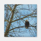 Uma fotografia de uma águia careca empoleirada numa árvore, com um olhar forte, observando o que está acontecendo abaixo dos galhos das árvores. Imagem Copyright ©2017 Kimberly J Tilley.