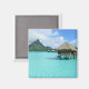 O ímã de Souvenir de um luxo bangalô aquático resort na clara lagoa azul da ilha pacifica de Bora Bora, perto de Tahiti, na Polinésia Francesa.