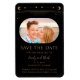 Mística Dourada Sun Moon Star Espaço Salva as Datas O Magnet apresenta um sol dourado, lua e estrelas armadas sobre um fundo preto. Dentro é a sua foto favorita e o seu personalizado salva as informações de data. Personalize editando o texto nas caixas de texto. Projetado por ©2022 Evco Studio www.zazzle.com/store/evcostudio
