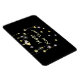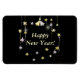 Magnet com meu design digital de estrelas, sinos e galerias de prata e ouro coloridos sobre fundo preto. Texto personalizável diz "Feliz ano novo!"