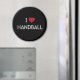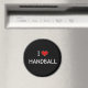 Eu Adoro imã de geladeira De Andebol. Inscrição branca e coração vermelho sobre fundo preto.