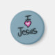 Ímã Eu Amo Jesus Eu Amo Jesus. Texto preto com gráfico de coração rosa brilhante no lugar da palavra “Amo”. Ímã fofo para qualquer um que ama Jesus. Personalize a cor do fundo. Aproveite!