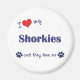 Mostre ao mundo o quanto você ama seus Shorkies (e que o sentimento é mútuo!). Com coração e duas pegadas, as palavras leram "Eu amo meus Shorkies e eles me amam". Esta design é especificamente para cães múltiplos (eles), também temos variantes disponíveis para cães machos solteiros (ele) ou fêmeas (ela). Um presente perfeito para você ou para o amante Shorkie em sua vida, este design está disponível em uma variedade de itens de presente e roupa!