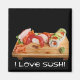 Uma visão para fazer água na boca de qualquer amante de sushi! Uma seleção de sashimi, nigiri e makis descendo em um conselho tradicional de madeira. Atum, salmão e cauda amarela em tons de vermelho, rosa e laranja fazem uma apresentação colorida junto com a pilha de gengibre laranja e wasabi.