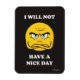 "Eu não terei um dia legal", gráfico emoji desenhado por Criativo mostra um emoticon rabugento com seus braços cruzados! Isso faz um presente excelente para a família, amigos ou um presente para você mesmo! Este gráfico engraçado é um excelente adicional ao estilo de qualquer um. Criativo é um criador líder e licenciador de designs e propriedades originais e tradicionais. ©LCT Creative. Licença de bCreative.com