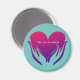 Este ímã apresenta um grande coração cor-de-rosa em duas mãos sobre um fundo azul aqua sereno.