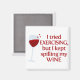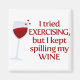 Este ímã engraçado apresenta uma imagem de uma clipart de um copo de vinho pontiagudo com pedaços de vinho saindo à esquerda do texto que diz, "Eu tentei EXERCER, mas continuei derramando meu vinho".