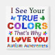 Citação inspiradora de "Eu vejo as suas verdadeiras cores, é por isso que te amo" com belos quebra-cabeça autistas para apoiar e amar alguém com autismo.