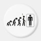 O banheiro masculino pode não ter uma linha pela porta, mas há uma longa linha de evolução que leva a essa figura de palito na placa do banheiro. O humor do geek se rompe com o familiar gráfico da antropologia, mostrando a descida da humanidade. Seus antepassados ficarão orgulhosos.