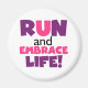 Se você gosta de correr, correr 5Ks, 10Ks, meia maratona, ou maratonas, você vai adorar este design de texto colorido em roxo e rosa que lê Run and Embrace Life! Corra e Abraça camisetas, canecas, bolsas, cartões, autocolantes, correntes-chave, mousépias, capas de iphone, ímãs e muito mais!