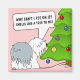 Cartoon de cão de ovelha farejando árvore de Natal decorada com intenção.