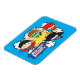 Veja Chibi Superman, Chibi Green Lantern, Chibi Batman e Chibi Flash saem de uma explosão com o logotipo da Liga da Justiça da América.
