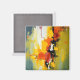 Dit abstracte schilderij straalt energie en dynamiek uit door het gebruik van levendige kleuren zoals geel, oranje, rood en zwart. De compositie lijkt op een explosie van licht en kleur, waarbij dikke verfstreken en spontane spatten samenkomen in het midden van het doek. De structuur van de verf en de contrasten tussen lichte en donkere tinten zorgen voor diepte en beweging. Het werk nodigt de kijker uit om eigen interpretaties te geven aan de krachtige vormen en het speelse kleurgebruik.