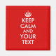 Mantenha a calma dizendo com esta modelo personalizável. Tem o logotipo da coroa calma. Diz "Mantenha Calma" e "Seu Texto". Adicione suas próprias palavras na modelo para personalizar. Você pode alterar o estilo ou a cor da fonte para personalizar. Ou adicione uma cor de fundo diferente. Mostre sua própria personalidade ou interesse. Você pode fazer uma design para qualquer ocasião. Isso faz um presente maravilhoso para aquela pessoa que você não sabe o que comprar. Fique mais calma, posters, camisas e itens personalizáveis em Mantenha Calma e Seu.