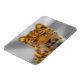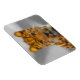 Linda face-leopardo com marcas laranja e pretas brilhantes e olhos piercing.