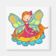 Uma fada bonito do jardim com um vestido cor-de-rosa e cabelos cor de laranja fluidos senta-se numa grande flor de azul e amarelo, uma design bonita de todas as idades certamente ama! Camisas de fada de jardim, fatos-macaco, bíblias, cobertores, cartões, canecas, bolsas, autocolantes, botões, ímãs, correntes-chave, mousépias, e muito mais!