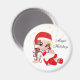 Um belo anjo da fada de Natal vestido de vermelho e estrelas. Texto de Feriados Mágicos pronto para ser personalizado.