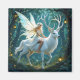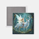 Fairytale magnet. A beautiful fairy in white riding on a white magical deer. Pretty fairy tale enchanted forest.