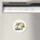 Dons de conto de fadas com Unicórnio branco, castelo e arco-íris bonito. Unicórnio tem vento soprando mano e cauda fluentes com flores em primeiro plano. Um design mágico em vários produtos para deleitar o amante da fantasia.