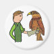 Falconry design mostra um falcoer afiado segurando seu pássaro de presa que o observa de perto.