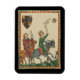 An illustration from the medieval 14th Century Codex Manesse manuscript. A king on horseback releases a falcon to catch a bird. Great gift for someone interested in the history and art of the middle ages.
