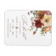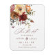 Uma bela imã salve a data elegante de casamento outono com "salvar a data" em letra burgundy e decorada com uma coloração aquosa colorida de flores de ferrugem, burgundy, laranja e pêssego com folhas verdes.