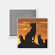 Uma mãe chita e seus três filhotes se acomodam para a noite enquanto o sol se põe atrás deles. Suas silhuetas se posicionam nitidamente contra as cores brilhantes do pôr do sol. Computação de Kathie Miller.