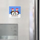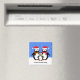 A legenda neste ímã de natal é #ChristmasIsComing. Ou edite-o facilmente para adicionar o seu próprio. A design mostra uma linda família de pinguins vestindo cachecóis stripey e chapéus festivos, com fundo de neve e flocos de neve em queda.