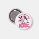Traga consciência para o seu frigorífico ou espaço de escritório com este ímã "Em outubro Vestimos Rosa"! Apresentando um fantasma bonito em um chapéu de bruxa voando sobre uma vassoura rosa contra uma lua de rosa claro com morcegos, é uma maneira divertida e significativa de decorar durante outubro. Perfeito para amantes de mês de consciência do câncer de mama e Halloween.