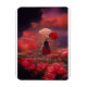 Uma cena sonhadora, atmosférica, de uma figura solitária, parada num mar de rosas vermelhas sob um dramático céu crítico. Esta arte romântica de fantasia evoca solidão, maravilha, e emoção poética, fazer-a como uma adição marcante a qualquer espaço. Ideal para amantes de paisagens surreais e narrativas através da arte visual.