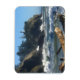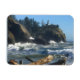 Uma bela tarde do outono em outubro de 2017. Vista do jato das ondas tempestuosas e do farol forte ao fundo. Parque Estadual de Cabo Desapontado, Ilwaco, Washington.