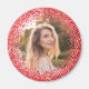 Create your own girly glam round magnet featuring a round faux red glitter border.