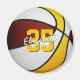 Este ímã legal do tema basquete apresenta a imagem de uma bola de basquete realista com painéis coloridos alternados de marrom, branco e ouro - facilmente personalizados com o nome do atleta & número de camisa - por katz_d_zynes