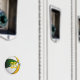 Este ímã legal do tema basquete apresenta a imagem de uma bola de basquete realista com painéis coloridos verde, branco e dourado alternados - facilmente personalizados com o nome do atleta & número de camisa - por katz_d_zynes