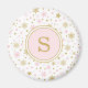 Íman bonito de inverno, com flocos de neve rosa e dourados, estrelas brilhantes falsas e sprinkles confetti. Personalize o ímã com o seu Excelente inicial - favoritos para festas!