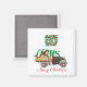 Um caminhão velho com uma árvore de Natal no telhado, e a mensagem Fazer Espíritos Brilhantes e Feliz Natal em uma design xadrez