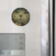 Uma gatinho de cinza super fofa que aparece neste ímã redondo.