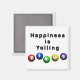 O texto diz "Felicidade é gritar BINGO" A palavra bingo é soletrada em bolas de bingo 3D com uma bola colorida diferente para cada letra. B é vermelho, I é azul, N é verde, G é amarelo, e O é roxo. Tenho um amante Bingo na sua vida. Este é o presente perfeito para eles.