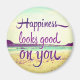 A felicidade é boa para você! Consiga esta inspiradora design tipográfica de "felicidade parece boa em você" com design de fundo de cena de praia serena em uma grande variedade de produtos.