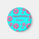Imã Feliz aniversário, cor-de-rosa, rosquinhas de azul