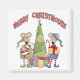 Dois camundongos de férias bonitos, um segurando uma bengala doce e um segurando um presente em frente a uma árvore de Natal com o texto 'Christmouse Feliz'.