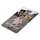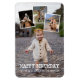 O imã de aniversário imprimiu quatro das suas próprias fotos numa colagem. Como uma sobreposição, um branco de fonte peculiar dizendo feliz aniversário e, abaixo, você pode adicionar de quem é o aniversário. Perfeito para os aniversários de pais e avós.