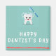 Feliz dia de dentista com dentes felizes com escova de dentes sobre fundo lacrimogêneo, é perfeito design para celebrar cirurgiões dentários que ajudam os pacientes a sorrir.