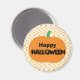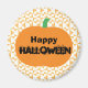 Uma abóbora feliz do Dia das Bruxas senta-se sobre um padrão personalizado de formas de giro do abstrato.